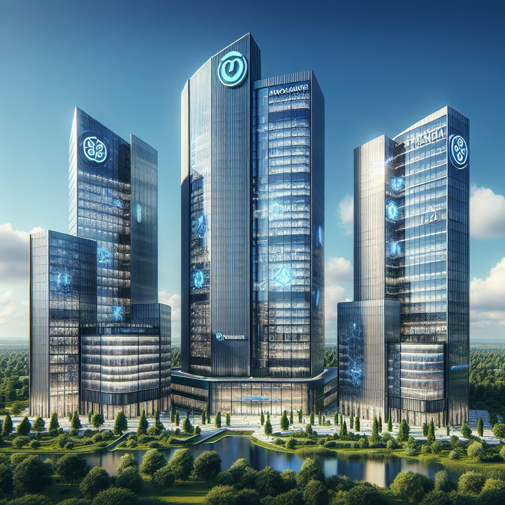 Headquarters of major pharmaceutical companies with sleek buildings and well-maintained landscapes.